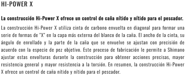 Además, los puntos débiles que suelen encontrarse en las cañas largas se suprimen gracias a la estructura reforzada exclusiva de Shimano, [High Power X]. Se ha logrado una sensación de fundición nítida y operabilidad.