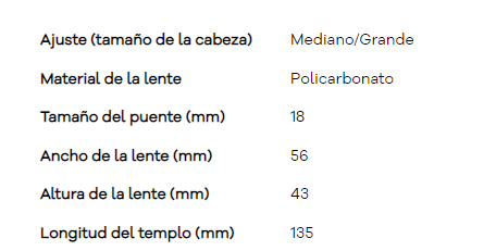 - Protección 100% UVA/UVB con claridad libre de distorsión